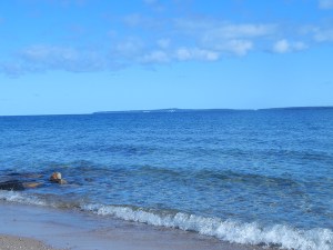 After a fantastic lunch at a diner in Onaway, we buy a homemade rhubarb pie and finish the drive to a rental cabin on Lake Huron, almost at the very Tip of the Mitt (an expression that makes perfect sense to Michiganders). Directly across from our twenty feet of beach, Bois Blanc Island spreads out across the horizon. A magical place that I visit in Vagabond Song: